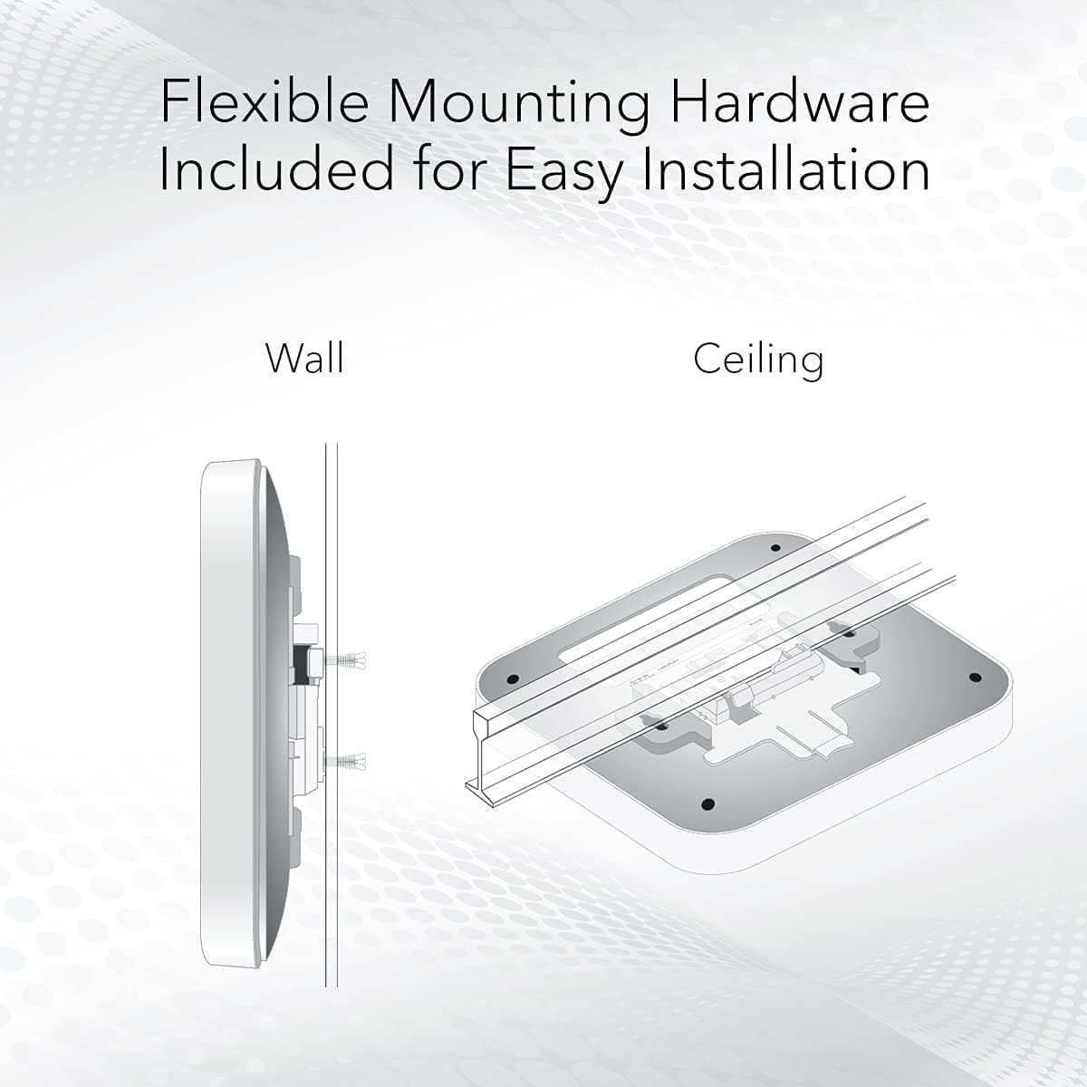 | Mounting | Ceiling or Wall (hardware included) |