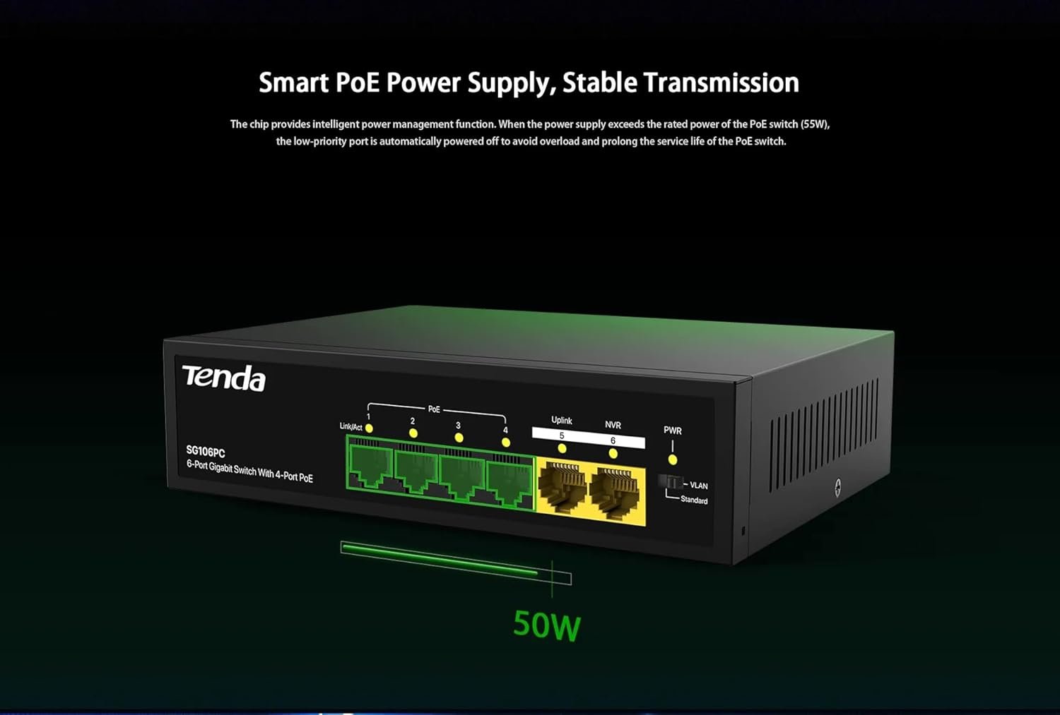 - Tenda SG106PC 6-Port Gigabit Lite PoE Switch