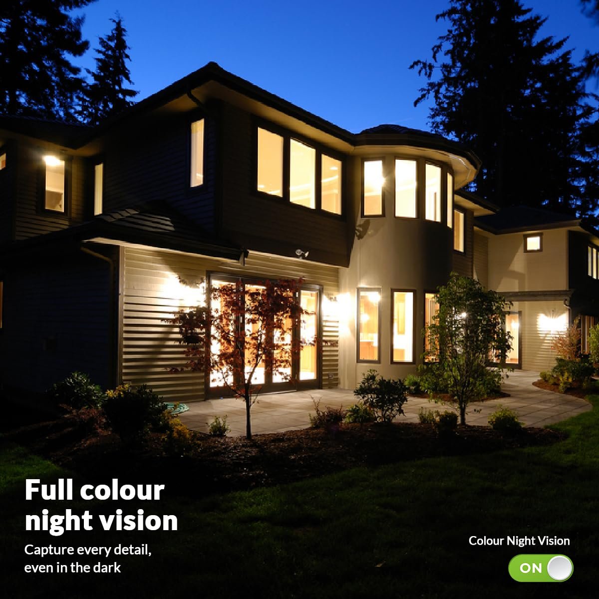 - Full Colour Mode: White light always on โ provides colour images throughout the night